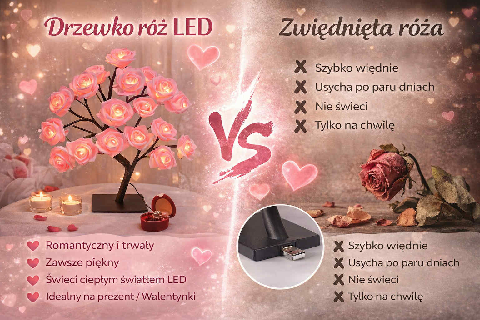 Lampka LED Drzewko Róż - Idealny Prezent dla Niej
